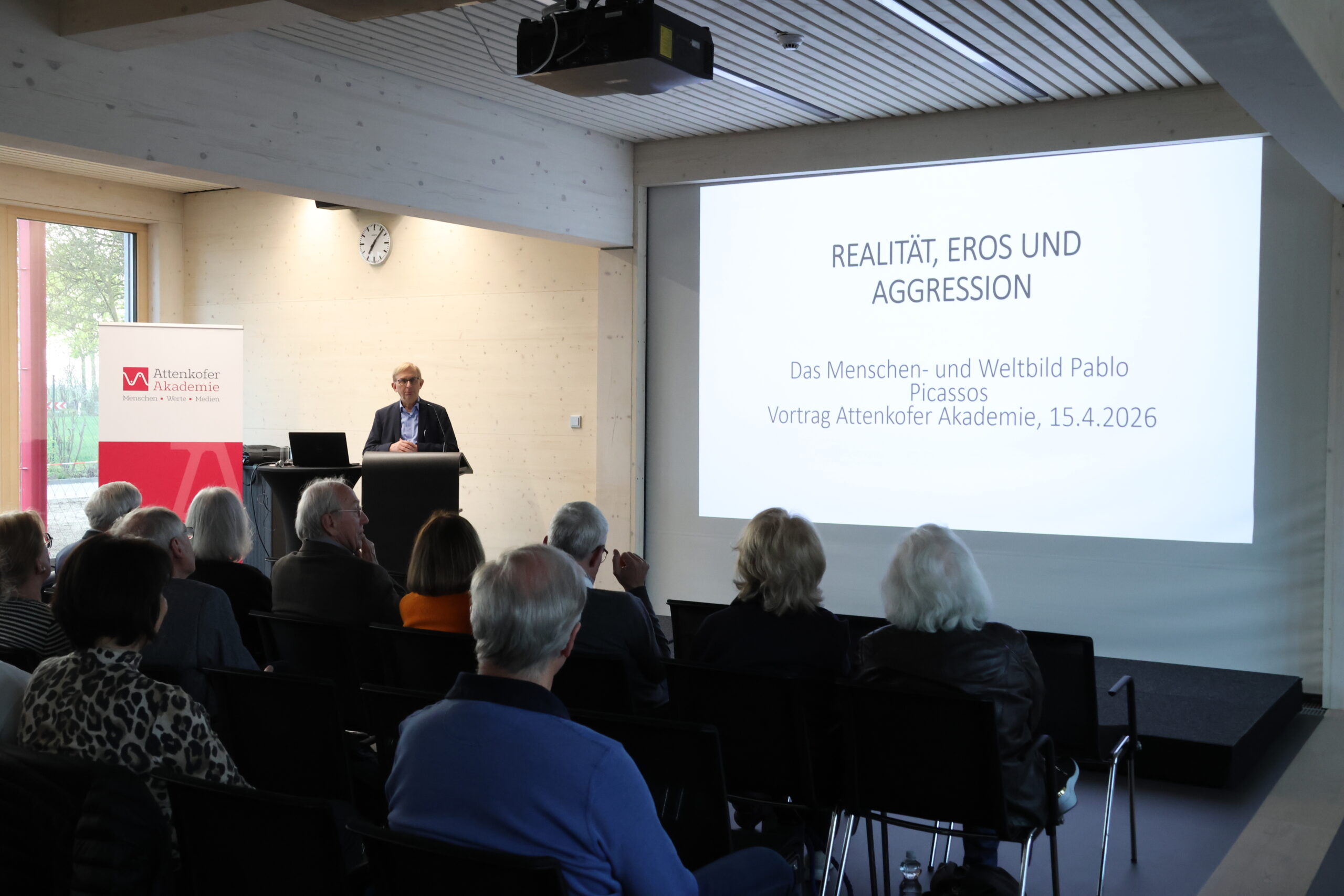 Mit diesen Kernthemen befasst sich Dr. Michael Kausch auch in seinem neuen Buch „Realität, Eros und Aggression – das Menschen- und Weltbild Pablo Picassos“, das er dem Publikum in der Attenkofer Akademie vorstellte. Das Buch ist im Buchhandel erhältlich. Die Stiftung Attenkofer hat Dr. Kausch für weitere Kunstvorträge gewinnen können. Am 13. Mai widmet er sich Auguste Rodin, am 10. Juni Claude Monet. Karten sind demnächst erhältlich.